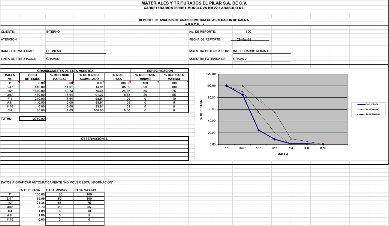 Producto cribado de piedra caliza que pasa la malla de 3/4 a 1/4, ideal para la elaboración de concreto hidráulico, utilizado en lozas, columnas, vigas, firmes, banquetas, etc.